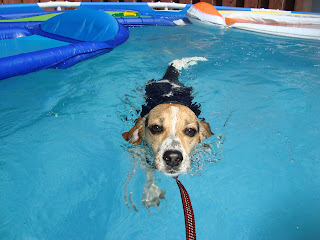 We finally had some warm days and that meant it was time to start enjoying the pool, the kids wanted the pup to get cooled off with them the other day so she took a dip with them.